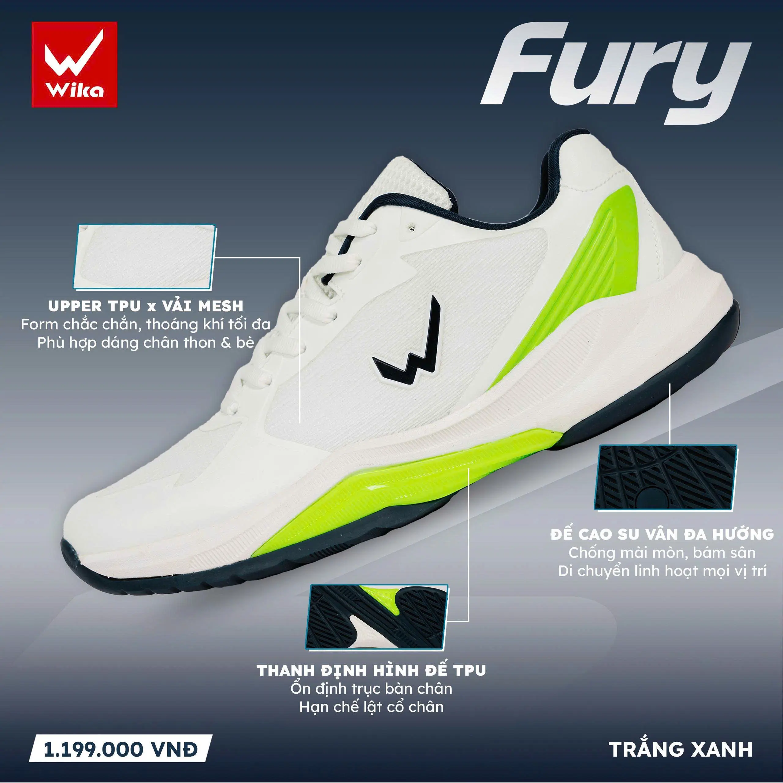 GIÀY THỂ THAO PICKLEBALL, CẦU LÔNG FURY WIKA